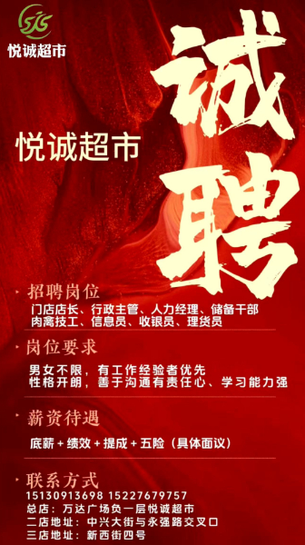 悦诚超市招聘