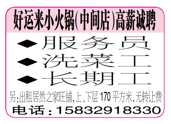 好运来小火锅(中间店)高薪诚聘